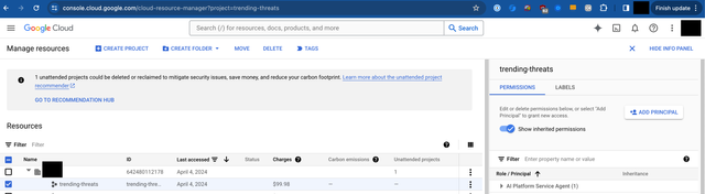 2. Next, go to IAM & Admin > Manage Resources , select your top-level project that houses your Google Cloud Run Service